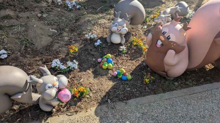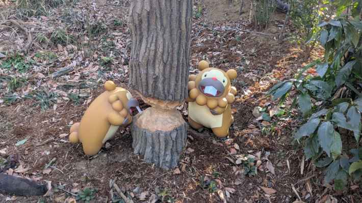 接著會經過 地鼠 挖洞的「地鼠木洞」、傳來陣陣啃木聲的「大牙狸 啃木場」,以及設有長椅的「星空松鼠 休息處」,後者更有守護樹果的 星空松鼠 與伺機而動的 比比鳥 等鳥類寶可夢,呈現出寶可夢之間的互動關係。