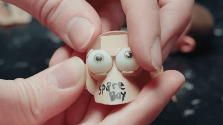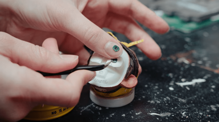 黏合方面也別具巧思。團隊使用凡士林來黏合眼球與眼皮,這種材料既能提供足夠的黏著力,又能在拍攝不同影格時輕鬆移動部件。