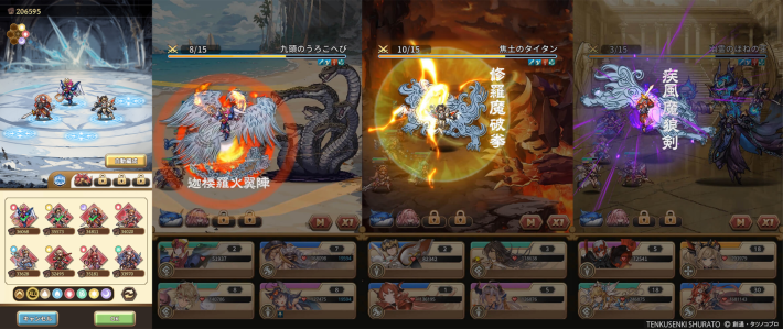 在遊戲設定上,三位角色各具特色:修羅王修拉特是光屬性的前鋒戰士,擁有高生存力與穩定輸出;夜叉王凱則是專精於單體破壞的暗屬性刺客;迦樓羅王雷加則是能操控戰場節奏的火屬性法師,擅長施加比例傷害與狀態異常。