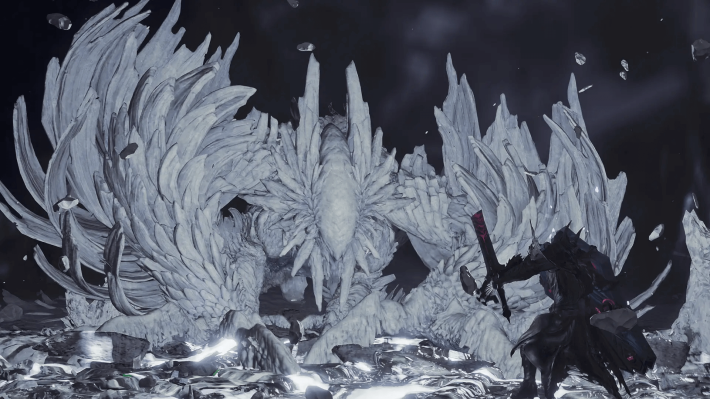 此外,遊戲也將迎來兩隻高難度魔物。同樣於 3 月 4 日配信的 ★10 活動任務「天人們的 Elpis(暫譯)」,將讓 HR100 以上的獵人挑戰強化個體的「爵銀龍」。而 3 月 12 日(星期四)則會配信另一個 ★10 活動任務「特殊任務・討伐閣螳螂(暫譯)」,這是一個沒有高台上支援獵人參與的特殊任務,獵人需獨力面對更加兇猛的閣螳螂。