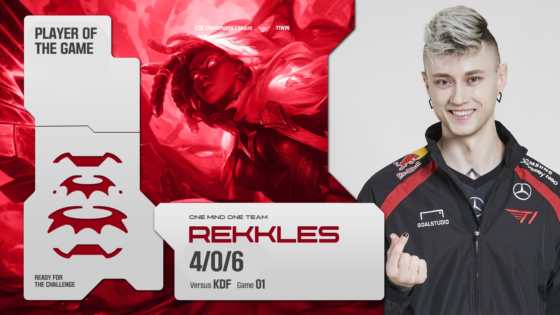 回到比賽本身,T1二隊第一局在中期建立起了優勢,成功先下一城,T1眾人更亮出了FNC標。Rekkles此局選出了姍娜,表現相當出色,交出4/0/6的戰績,90.9%的擊殺參與率和23.4%的輸出百分比。KDF二隊在次局ban掉了姍娜,逼迫Rekkles拿出了銳空,經過跌宕起伏的44分鐘持久戰後,KDF二隊偷家成功,扳回一城。第三局Rekkles選用了銳兒,不過仍然難以阻止T1二隊葬送前期優勢,KDF二隊2:1贏下這場比賽。